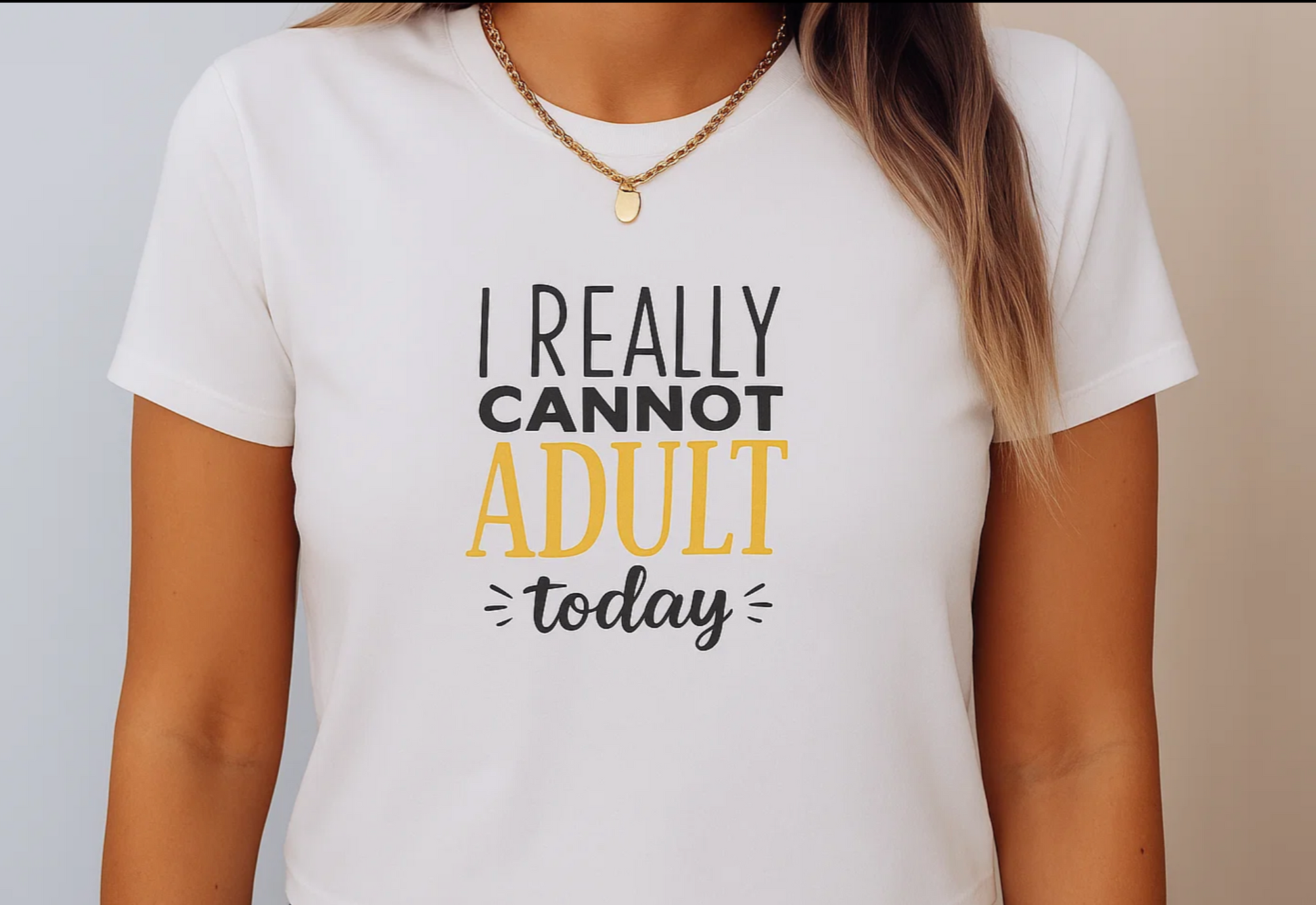The adulting struggles tee carries a playful message that says exactly what you’re thinking—“I really cannot adult today”—without you having to explain. Whether you’re chilling at home, running weekend errands, or catching up with friends, it sets a fun, lighthearted tone that everyone can relate to. The tear-away label prevents itching and irritation, so you stay comfortable from coffee breaks to couch time. Side seams help the shirt hold its shape through repeated wear and washes, while the ribbed knit collar ensures it stays looking fresh.