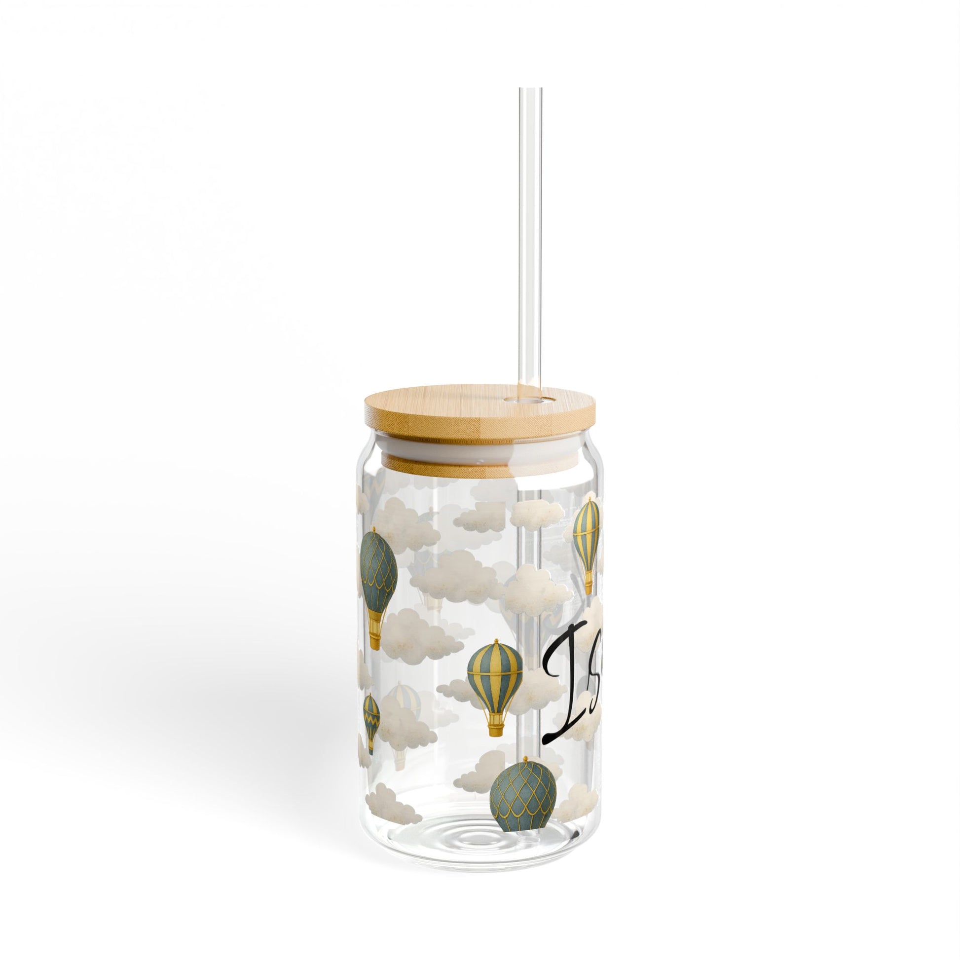 Personalized Blue Hot Air Balloon Sipper Glass – Custom Cloud Drink Tumbler 16oz