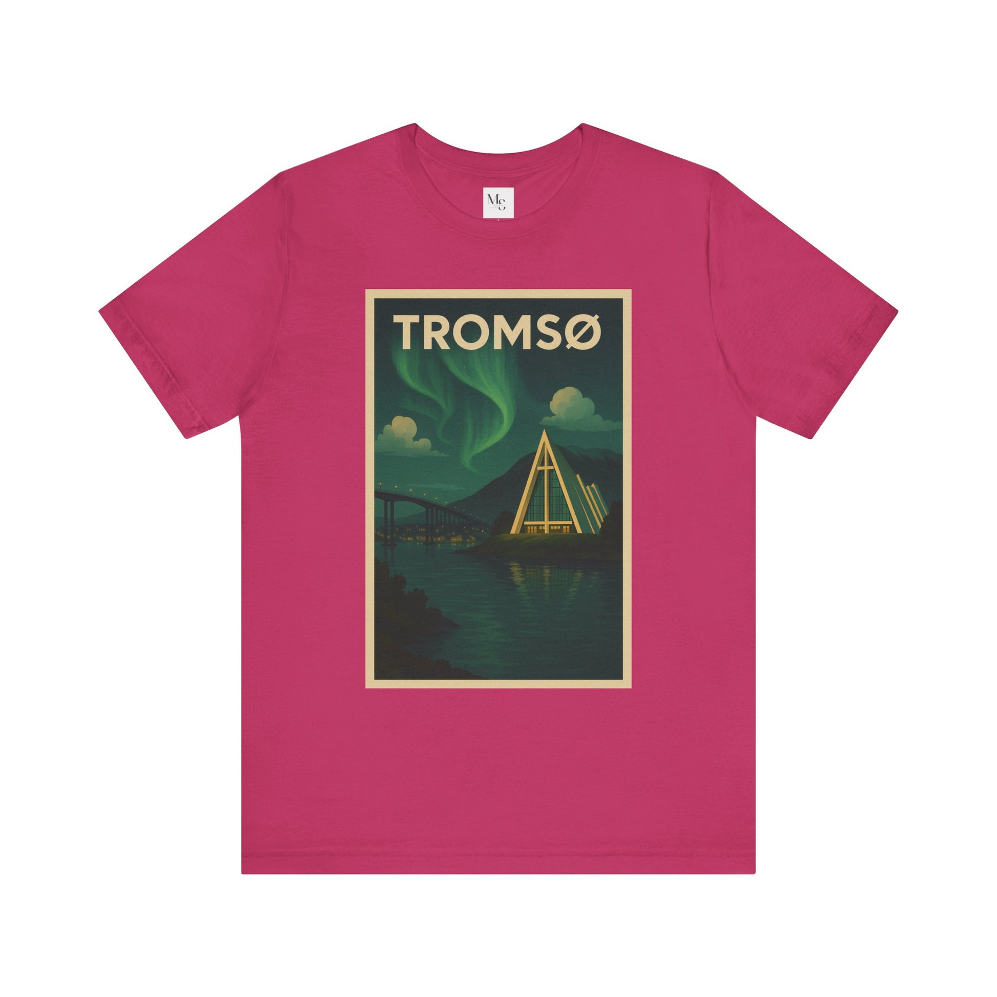Celebrate the magic of the Arctic sky with the Tromsø night tee, a unisex graphic shirt capturing the brilliant Aurora Borealis dancing above Tromsø’s skyline. This popular design brings the wonder of Northern Lights into everyday style, perfect for those who chase celestial beauty and cold-weather adventures.