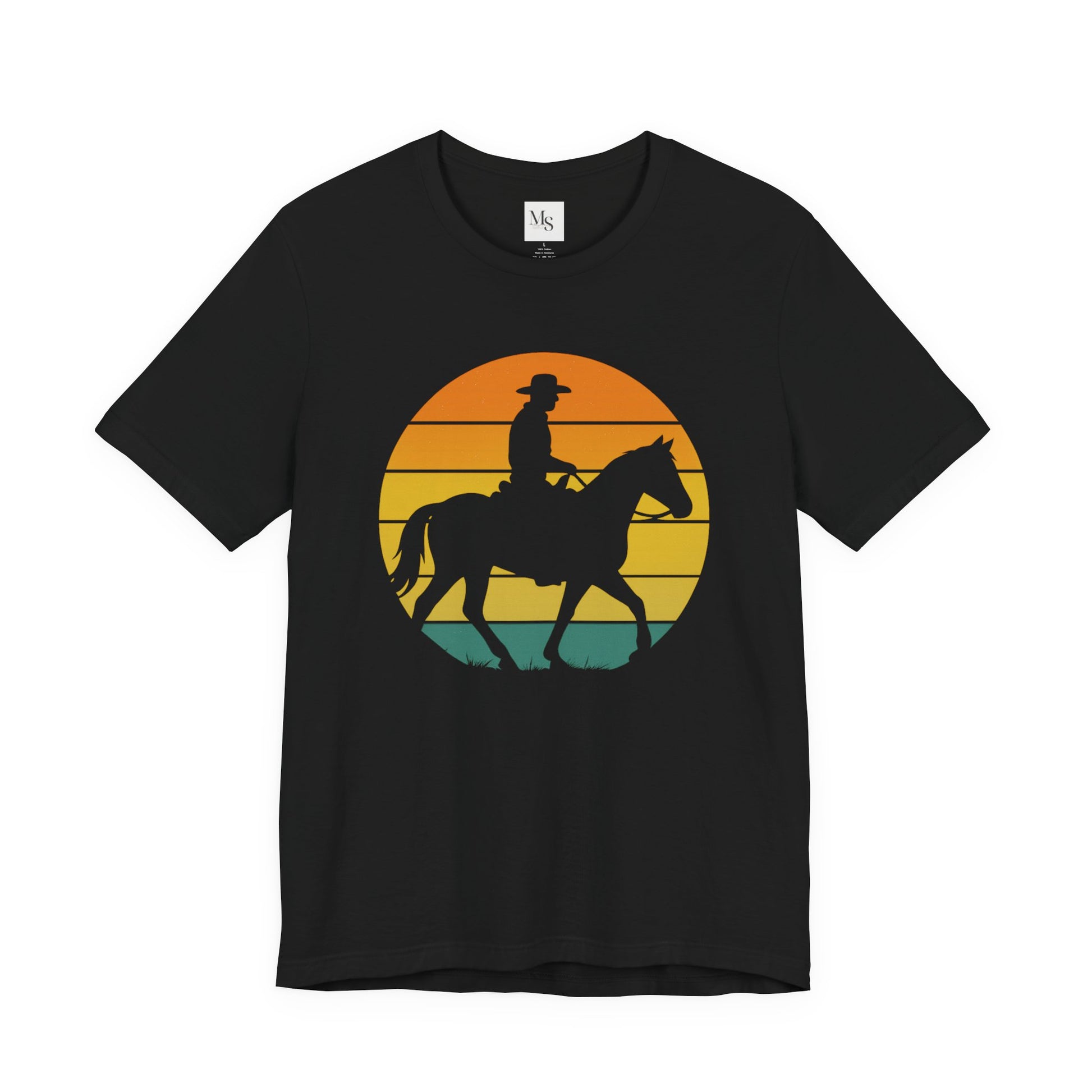 Western Cowboy Sunset Tee, Casual T-Shirt, Cowboy Shirt, Outdoor Apparel, Gifts for Horse Lovers